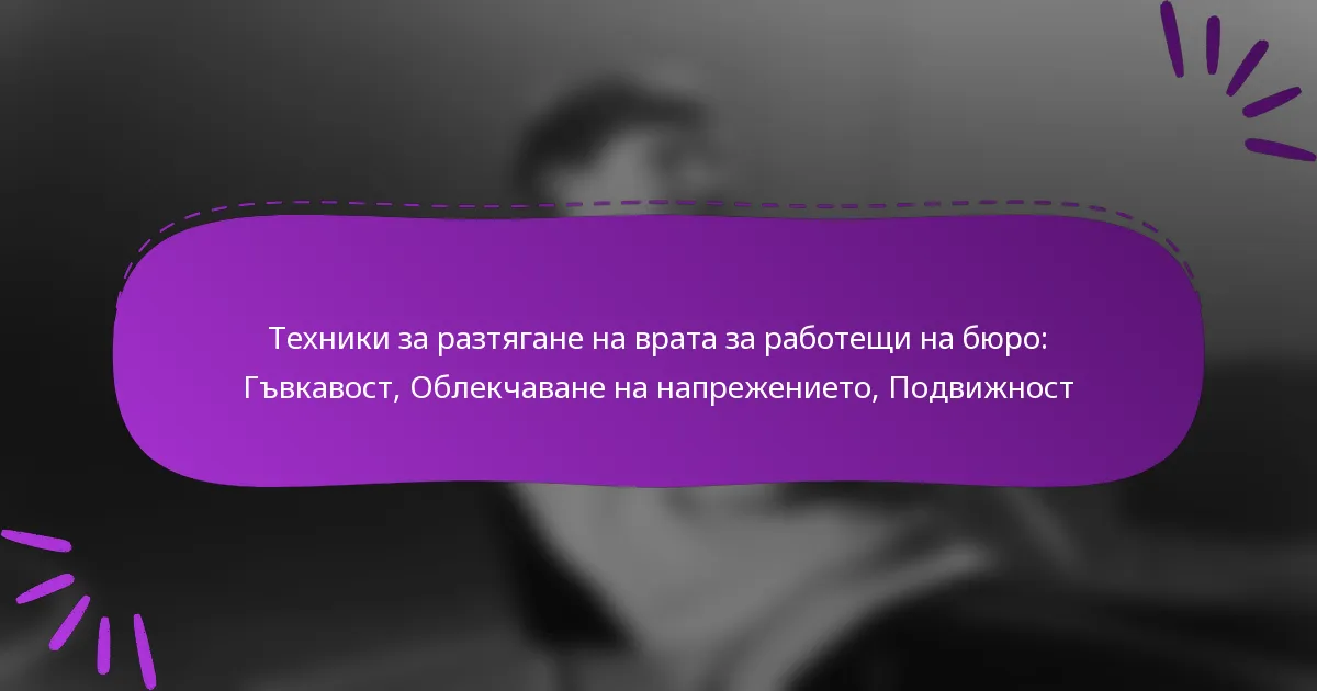 Ефективните техники за разтягане на врата за работещите на бюро помагат за облекчаване на напрежението, подобряване на гъвкавостта и увеличаване на подвижността. Включването на комбинация от статични и динамични разтягания може значително да намали дискомфорта, свързан с продължителното седене и работа на компютър.